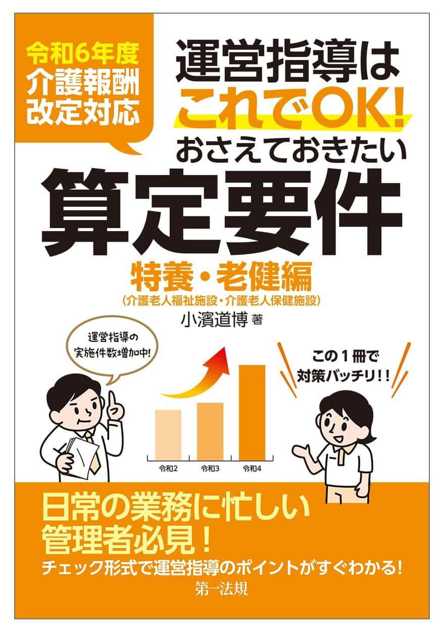 介護老人福祉施設、介護老人保健施設に対して行われる「運営指導」で、施設の指定取消などの行政処分につながるような誤りを起こさないための、主に施設の管理者向けの解説書。令和6年4月の報酬改定に対応。